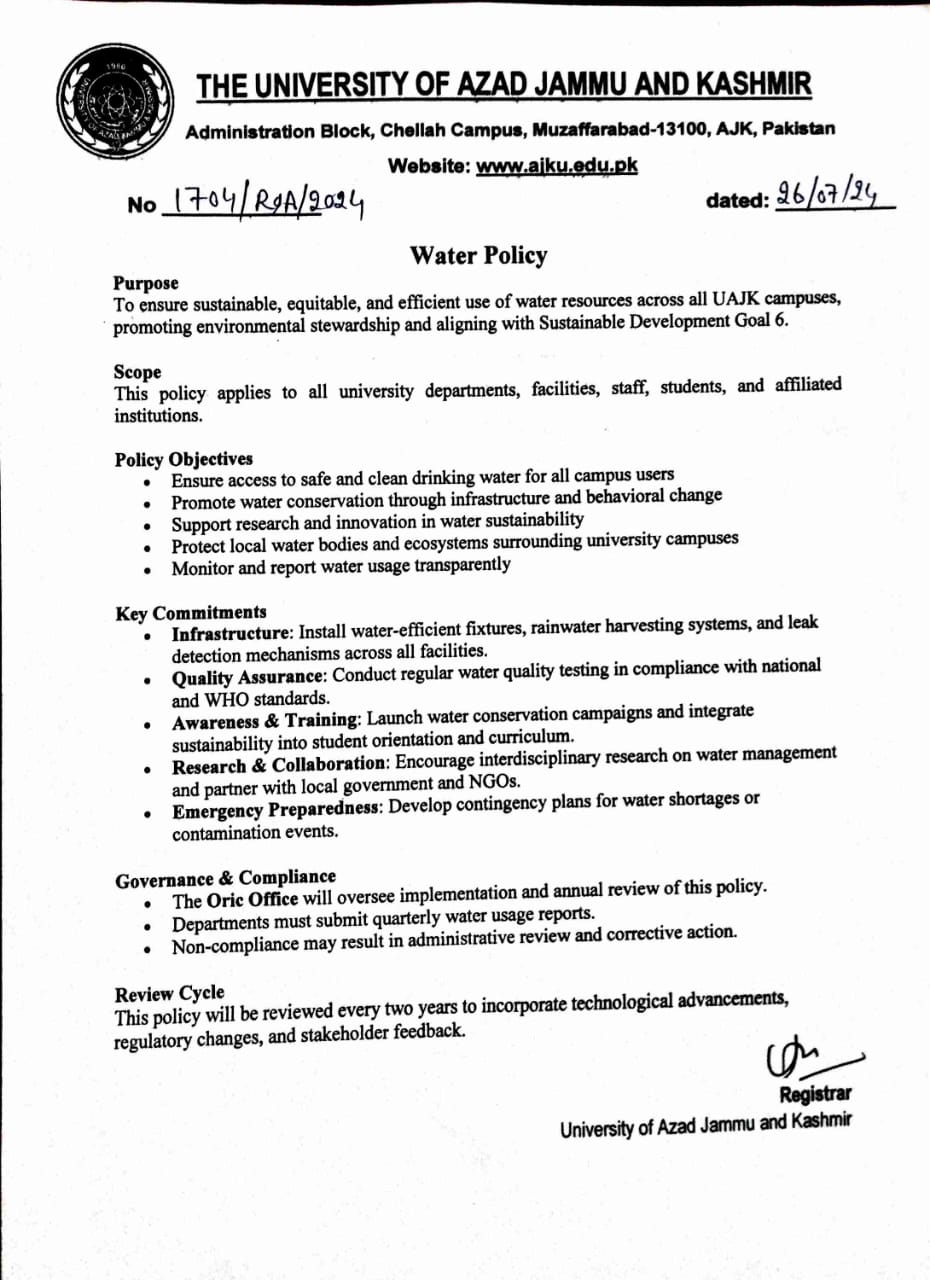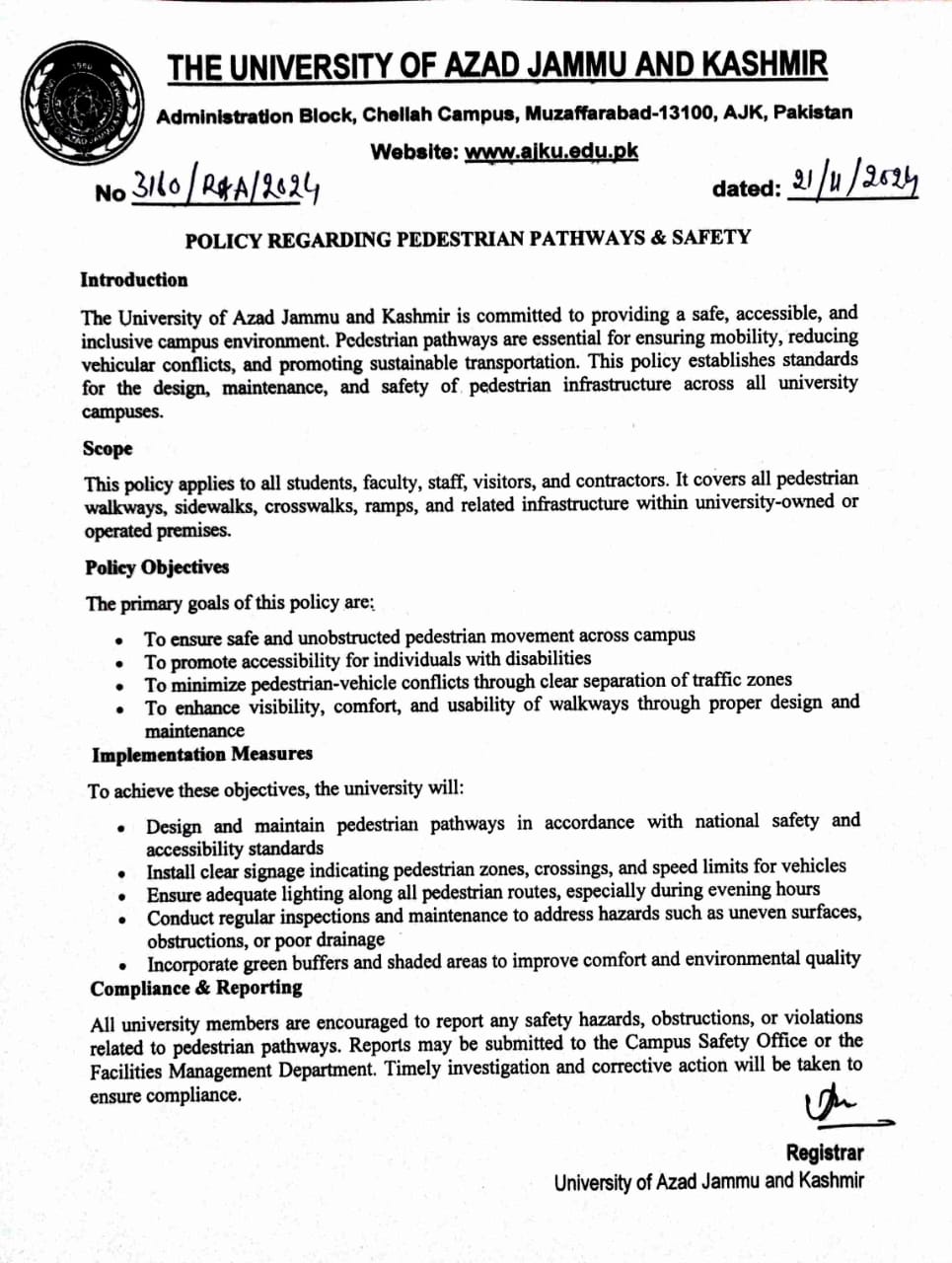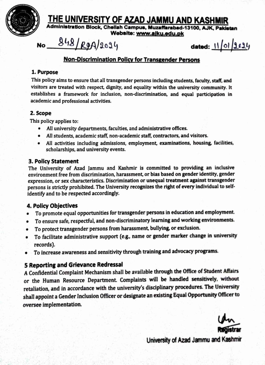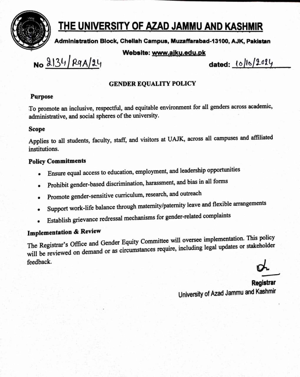 The Policy regarding Gender Equality in the University of Azad Jammu and Kashmir