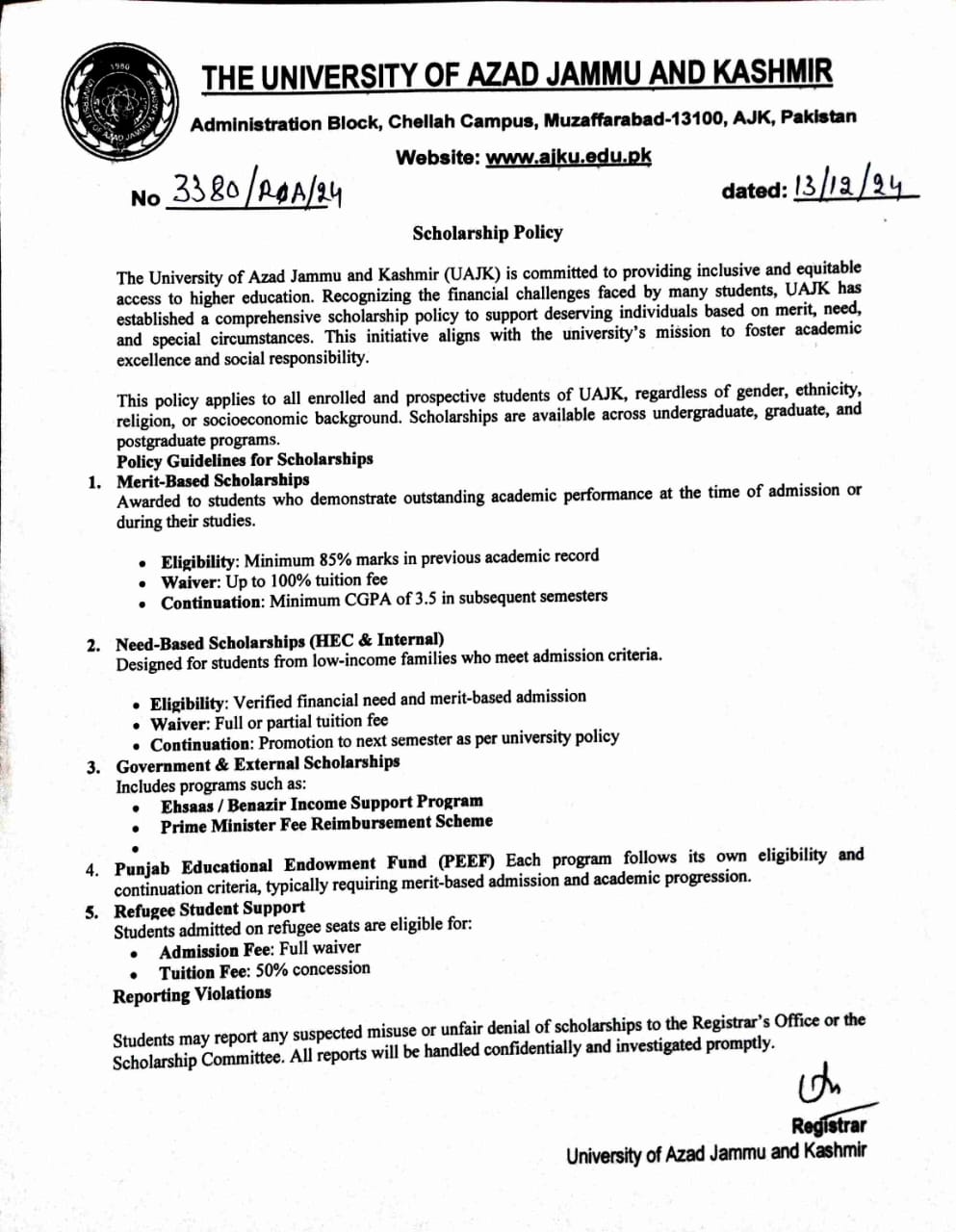 The Scholarship Policy in the University of Azad Jammu and Kashmir